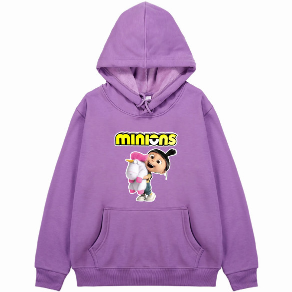 Shop the Minions Agnes Hoodie Hooded Sweatshirt Sweater Jacket with Agnes Unicorn Stuff Toy. Stay stylish and cozy with this adorable combo.This hoodie is made from a blend of cotton and polyester. Relaxed fit with a jersey-lined, drawstring hood, a kangaroo pocket, long sleeves and wide ribbing at the cuffs and hem. Soft brushed inside.Features:- Rib-knit cuffs and waistband for stretchability- Double-lined hood and color-matched drawcord- Side-seamed- Pouch pocket- Pullover type