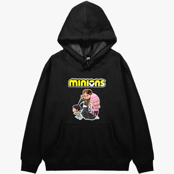 Get the trendiest Minions Hoodie with a hooded sweatshirt design for a stylish look. This sweater jacket showcases Agnes, Edith, and Margo's dog on it.This hoodie is made from a blend of cotton and polyester. Relaxed fit with a jersey-lined, drawstring hood, a kangaroo pocket, long sleeves and wide ribbing at the cuffs and hem. Soft brushed inside.Features:- Rib-knit cuffs and waistband for stretchability- Double-lined hood and color-matched drawcord- Side-seamed- Pouch pocket- Pullover type