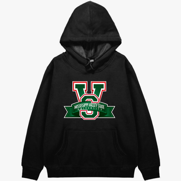 Stay warm and show your support for the Mississippi Valley State University Delta Devils football team with this Delta Devils hoodie sweatshirt jacket. Perfect for fans and alumni alike, this jacket features the iconic single logo design.This hoodie is made from a blend of cotton and polyester. Relaxed fit with a jersey-lined, drawstring hood, a kangaroo pocket, long sleeves and wide ribbing at the cuffs and hem. Soft brushed inside.Features:- Rib-knit cuffs and waistband for stretchability- Double-lined hood and color-matched drawcord- Side-seamed- Pouch pocket- Pullover type