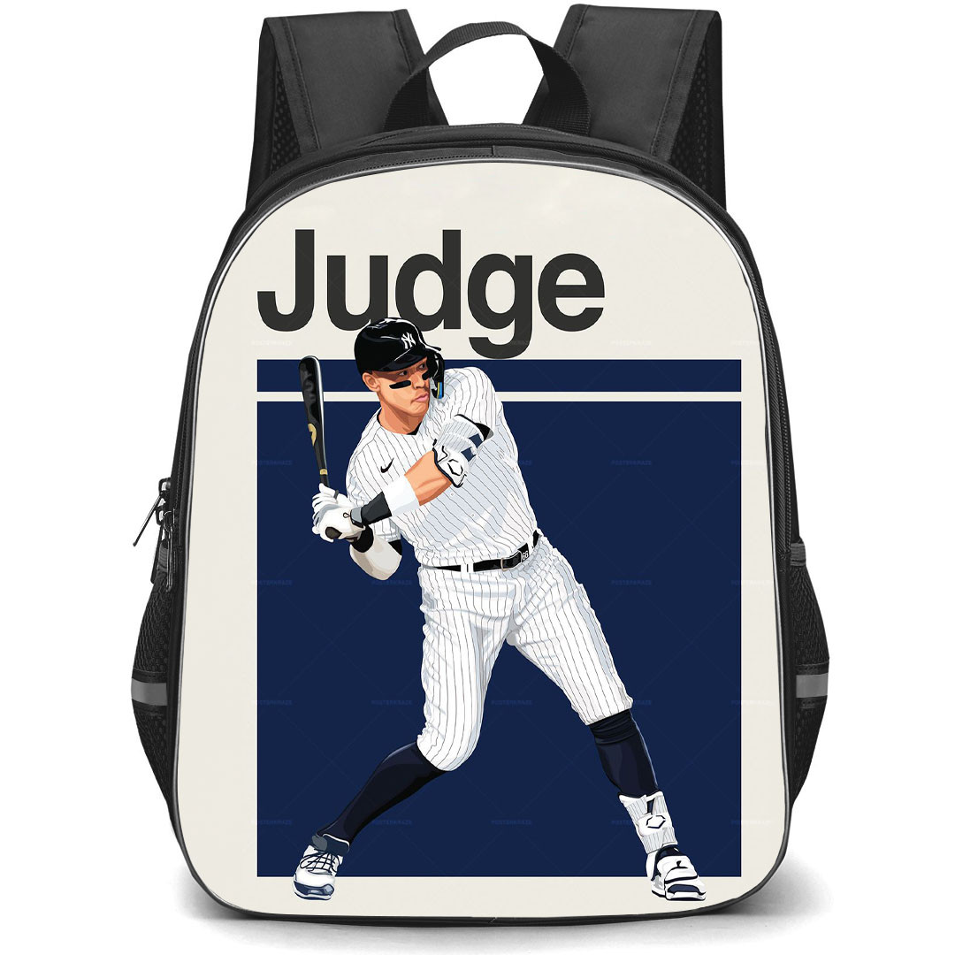 Get the MLB Aaron Judge Backpack, perfect for students and Yankees fans. Featuring an eye-catching illustration poster of Aaron Judge on a striking blue background.Our StudentPack is ultra durable and trendy, designed especially for students both young and old. Featuring one main compartment, a front compartment, and all of the space you could ever imagine. Durable and lightweight, the StudentPack is the perfect throw-on-and-go backpack for students.Features:- Roomy main compartment- Front compartment- 2 mesh pockets on both sides- Built to last, high quality waterproof oxford cloth- Adjustable padded shoulder straps- Front pocket with built in organizer- Padding on the back panel for superior comfort- Padded grab handle on top- High quality metal zips- 100% recycled undyed linerSpecifications:Fabric: 100% Polyester Oxford ClothCapacity: 15L (Small size) / 27L (Large size)Weight: 17.63 oz / 500gDimensions: Large size: 16.5" x 13" x 6.3" / 42 x 33 x 16 cmSmall size: 13" x 11" x 6.3" / 32 x 28 x 16 cm