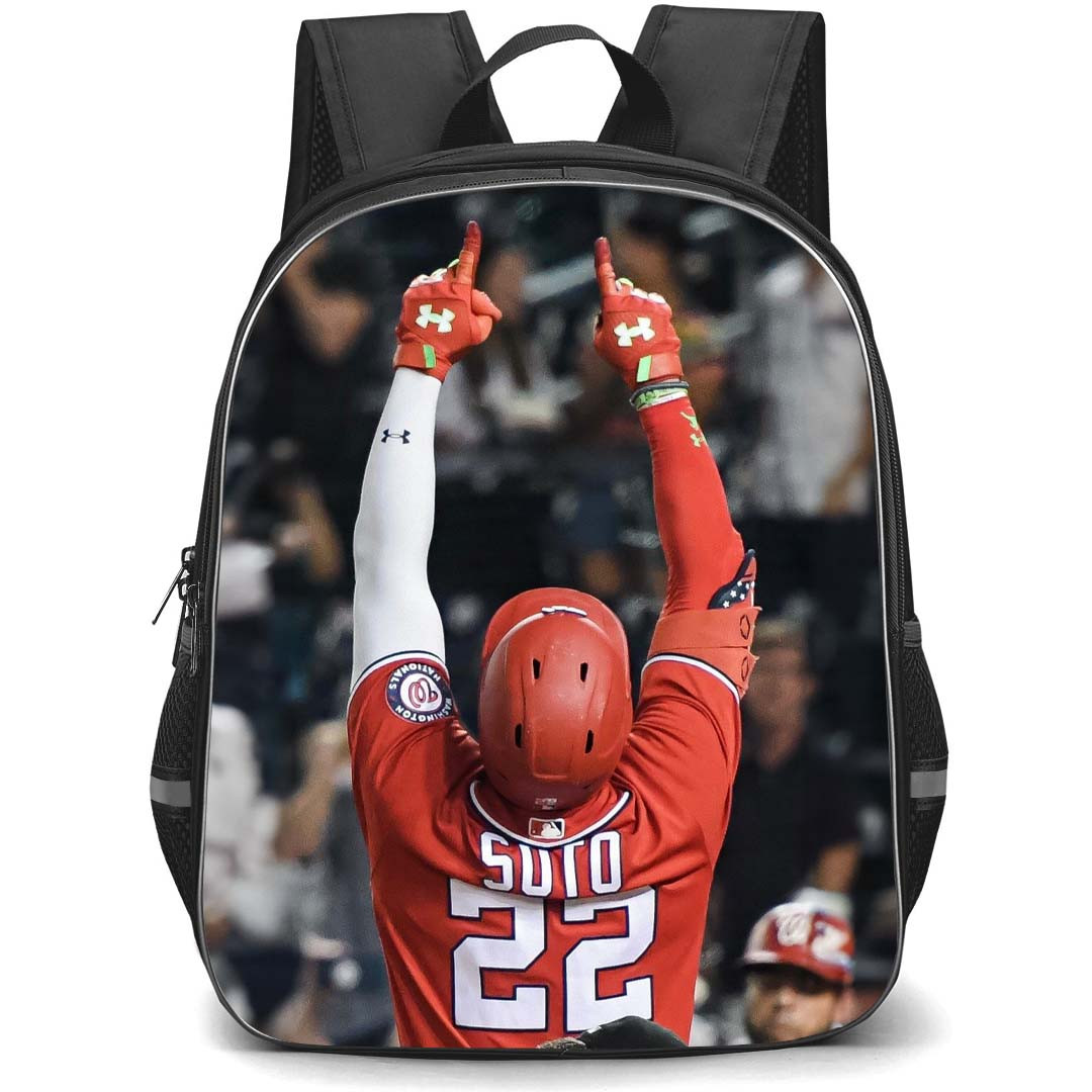 Stay organized and show off your love for MLB with the MLB Juan Soto Backpack StudentPack. Perfect for students, this backpack features Juan Soto's iconic number 22 and a San Diego Padres back celebration poster design.Our StudentPack is ultra durable and trendy, designed especially for students both young and old. Featuring one main compartment, a front compartment, and all of the space you could ever imagine. Durable and lightweight, the StudentPack is the perfect throw-on-and-go backpack for students.Features:- Roomy main compartment- Front compartment- 2 mesh pockets on both sides- Built to last, high quality waterproof oxford cloth- Adjustable padded shoulder straps- Front pocket with built in organizer- Padding on the back panel for superior comfort- Padded grab handle on top- High quality metal zips- 100% recycled undyed linerSpecifications:Fabric: 100% Polyester Oxford ClothCapacity: 15L (Small size) / 27L (Large size)Weight: 17.63 oz / 500gDimensions: Large size: 16.5" x 13" x 6.3" / 42 x 33 x 16 cmSmall size: 13" x 11" x 6.3" / 32 x 28 x 16 cm