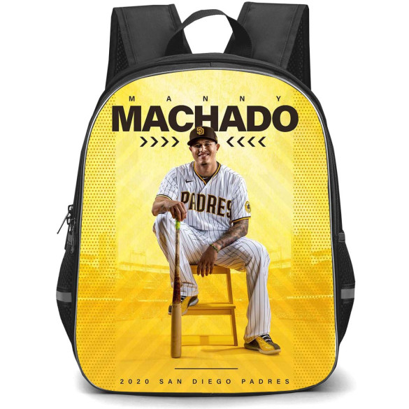 Get the MLB Manny Machado Backpack StudentPack, designed for San Diego Padres fans. Featuring Manny Machado sitting on a chair against a vibrant yellow background, this backpack is a must-have for any baseball enthusiast.Our StudentPack is ultra durable and trendy, designed especially for students both young and old. Featuring one main compartment, a front compartment, and all of the space you could ever imagine. Durable and lightweight, the StudentPack is the perfect throw-on-and-go backpack for students.Features:- Roomy main compartment- Front compartment- 2 mesh pockets on both sides- Built to last, high quality waterproof oxford cloth- Adjustable padded shoulder straps- Front pocket with built in organizer- Padding on the back panel for superior comfort- Padded grab handle on top- High quality metal zips- 100% recycled undyed linerSpecifications:Fabric: 100% Polyester Oxford ClothCapacity: 15L (Small size) / 27L (Large size)Weight: 17.63 oz / 500gDimensions: Large size: 16.5" x 13" x 6.3" / 42 x 33 x 16 cmSmall size: 13" x 11" x 6.3" / 32 x 28 x 16 cm
