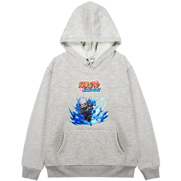 Stay warm and stylish with our Naruto Shippuden Kakashi Hatake Hoodie. This hooded sweatshirt, featuring the iconic Lightning Blade design, is perfect for any Naruto fan.This hoodie is made from a blend of cotton and polyester. Relaxed fit with a jersey-lined, drawstring hood, a kangaroo pocket, long sleeves and wide ribbing at the cuffs and hem. Soft brushed inside.Features:- Rib-knit cuffs and waistband for stretchability- Double-lined hood and color-matched drawcord- Side-seamed- Pouch pocket- Pullover type
