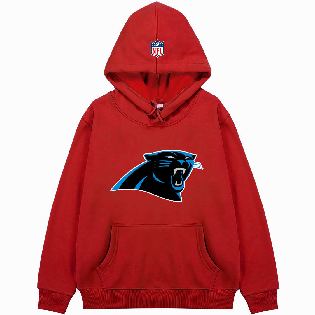 Get game-day ready with this Carolina Panthers Hoodie Hooded Sweatshirt Sweater Jacket featuring the iconic single logo of the Carolina Panthers team. Stay warm and stylish while showing support for your favorite NFL team.This hoodie is made from a blend of cotton and polyester. Relaxed fit with a jersey-lined, drawstring hood, a kangaroo pocket, long sleeves and wide ribbing at the cuffs and hem. Soft brushed inside.Features:- Rib-knit cuffs and waistband for stretchability- Double-lined hood and color-matched drawcord- Side-seamed- Pouch pocket- Pullover type
