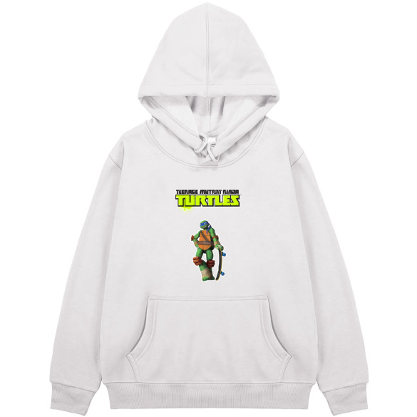 Get ready to show off your turtle power with this high-quality Ninja Turtles Leonardo hoodie! Whether you're a fan of his fearless leadership or his epic skateboarding skills, this comfortable and stylish hoodie will have you channeling your inner ninja.This hoodie is made from a blend of cotton and polyester. Relaxed fit with a jersey-lined, drawstring hood, a kangaroo pocket, long sleeves and wide ribbing at the cuffs and hem. Soft brushed inside.Features:- Rib-knit cuffs and waistband for stretchability- Double-lined hood and color-matched drawcord- Side-seamed- Pouch pocket- Pullover type