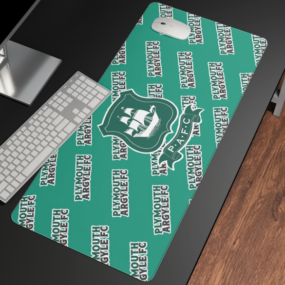 Enhance your desktop setup with the Plymouth Argyle FC Large Mouse Pad. Designed with the iconic Argyle Football Club Medley Monogram Wordmark, this high-quality desk pad is a must-have for any fan.This desk pad is large enough to have a mouse, gaming keyboard, and other desk items on it while protecting your desk. Immerse yourself into games or work while keeping your desk area stylish. The rubberized non-slip grip allows you use this mouse pad on any surface. The surface of the waterproof material prevents accidental damage from liquid spills.Features:- Large Dimensions: 90x40cm, 35.5x16 inches- Small round dimensions: 20x20cm, 8 inches- Materials: PU and soft rubber