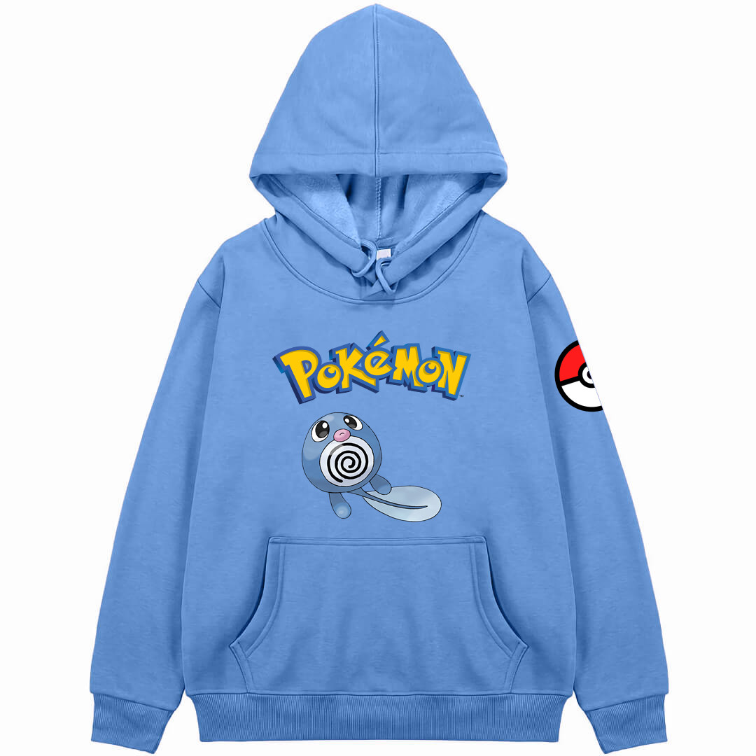Get your hands on this Pokemon Poliwag Hoodie featuring unique Poliwag character series art. Stay cozy and showcase your love for Pokemon with this stylish hoodie.This hoodie is made from a blend of cotton and polyester. Relaxed fit with a jersey-lined, drawstring hood, a kangaroo pocket, long sleeves and wide ribbing at the cuffs and hem. Soft brushed inside.Features:- Rib-knit cuffs and waistband for stretchability- Double-lined hood and color-matched drawcord- Side-seamed- Pouch pocket- Pullover type
