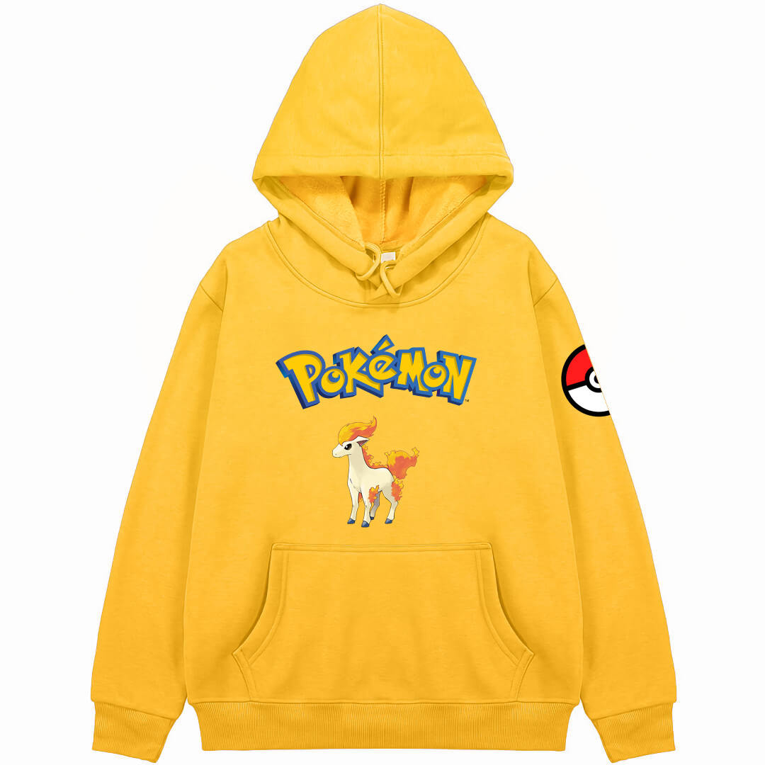 Shop the Pokemon Ponyta Hoodie featuring the adorable Ponyta character from the Pokemon Character Series Art. Stay stylish and cozy with this must-have hoodie.This hoodie is made from a blend of cotton and polyester. Relaxed fit with a jersey-lined, drawstring hood, a kangaroo pocket, long sleeves and wide ribbing at the cuffs and hem. Soft brushed inside.Features:- Rib-knit cuffs and waistband for stretchability- Double-lined hood and color-matched drawcord- Side-seamed- Pouch pocket- Pullover type