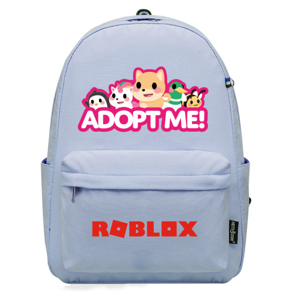 The Roblox Adopt Me Backpack SuperPack features an exclusive Adopt Me logo sticker. Unlock a world of creativity with this must-have accessory.Our SuperPack series backpacks are ultralight and perfect for everyday use. Featuring padded shoulder straps for extra comfort and support, and an organizer compartment to help keep all your little bits together. These backpacks are for those who want extra comfort, protection, and style. Features:- Roomy main compartment- Inner pocket within main compartment- Built to last, high quality polyester oxford cloth- Adjustable straight cut padded shoulder straps- Front pocket with built in organizer- Padding in center of back panel for superior comfort- Grab handle on top- Zipper pulls have cord tabs for easy grab access- 100% recycled undyed linerSpecifications:Fabric: 100% Polyester Fabric Oxford ClothCapacity Superpack: 1647 cu in / 27 LCapacity Plus: 1709 cu in / 28 LCapacity Pro: 1647 cu in / 27 LWeight Superpack: 14.1 oz / 400gWeight Plus: 17.53 oz / 500gWeight Pro: 14.1 oz / 400gDimensions Superpack: 17.7" x 12.2" x 7" / 45 x 31 x 18 cmDimensions Plus: 18.9" x 11.6" x 6.3" / 44 x 31 x 15 cmDimensions Pro: 17.3" x 11.8" x 6.3" / 44 x 30 x 16 cm