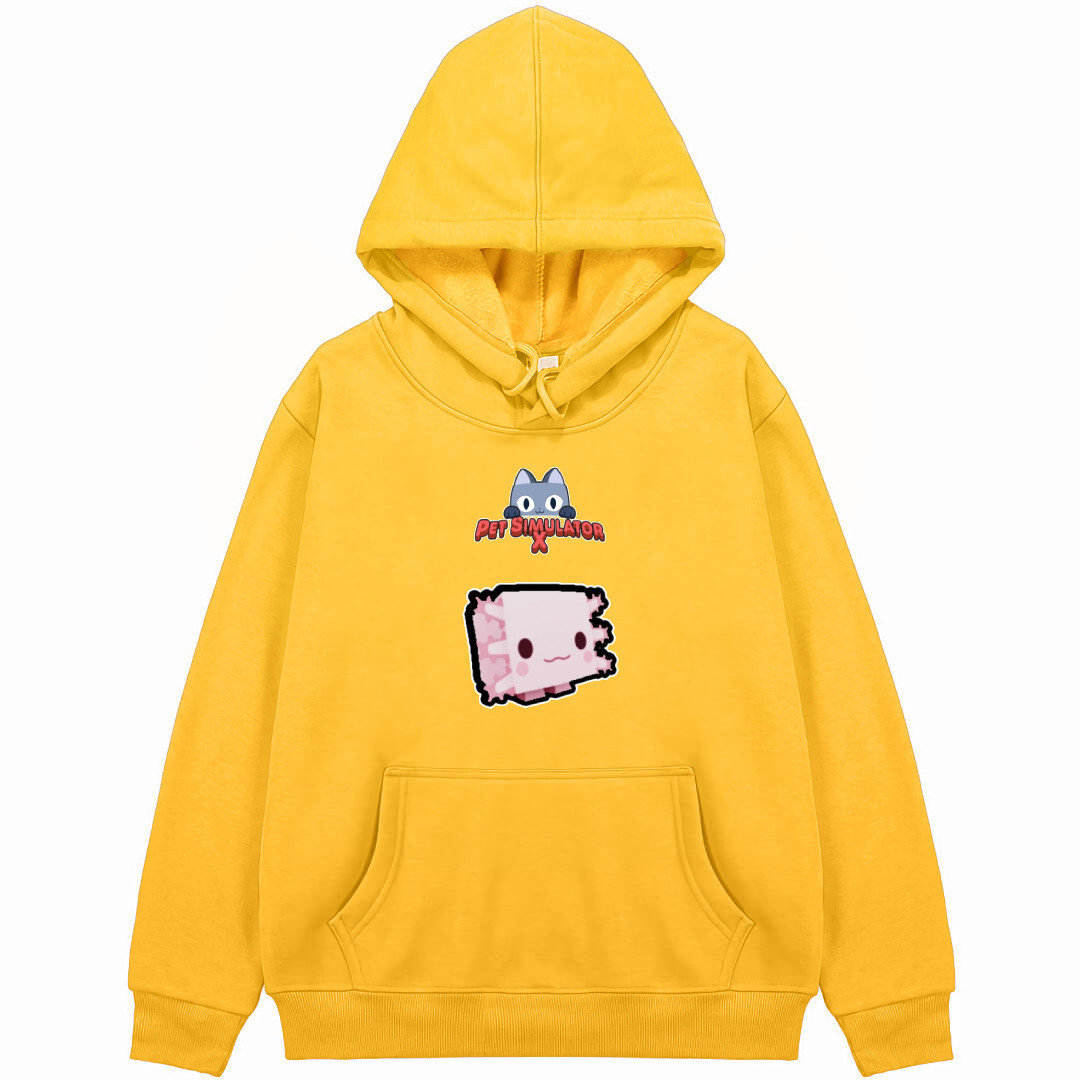 Shop the Roblox Pet Simulator X Axolotl Hoodie Hooded Sweatshirt Sweater Jacket now and show off your love for the adorable Axolotl character. Grab yours today and join the cutest gaming community out there!This hoodie is made from a blend of cotton and polyester. Relaxed fit with a jersey-lined, drawstring hood, a kangaroo pocket, long sleeves and wide ribbing at the cuffs and hem. Soft brushed inside.Features:- Rib-knit cuffs and waistband for stretchability- Double-lined hood and color-matched drawcord- Side-seamed- Pouch pocket- Pullover type