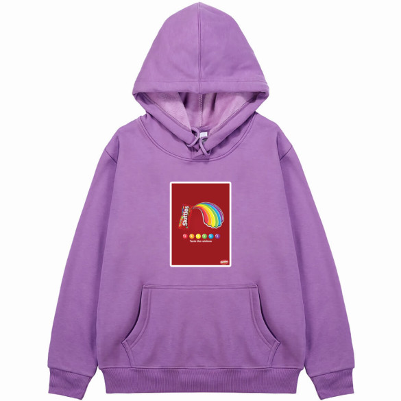 Stay cozy and stylish in this Skittles hoodie featuring a vibrant red background Skittles poster design. Perfect for adding a pop of color to your wardrobe.This hoodie is made from a blend of cotton and polyester. Relaxed fit with a jersey-lined, drawstring hood, a kangaroo pocket, long sleeves and wide ribbing at the cuffs and hem. Soft brushed inside.Features:- Rib-knit cuffs and waistband for stretchability- Double-lined hood and color-matched drawcord- Side-seamed- Pouch pocket- Pullover type