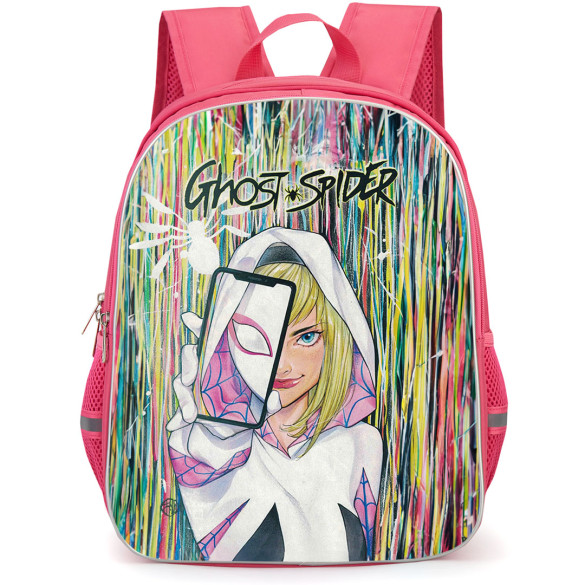 Introducing the Spider Man Across The Spider Verse Spider Gwen Backpack StudentPack, featuring an exclusive Ghost-Spider Spider Gwen illustration. Be unstoppable with this stylish and functional backpack, perfect for students.Our StudentPack is ultra durable and trendy, designed especially for students both young and old. Featuring one main compartment, a front compartment, and all of the space you could ever imagine. Durable and lightweight, the StudentPack is the perfect throw-on-and-go backpack for students.Features:- Roomy main compartment- Front compartment- 2 mesh pockets on both sides- Built to last, high quality waterproof oxford cloth- Adjustable padded shoulder straps- Front pocket with built in organizer- Padding on the back panel for superior comfort- Padded grab handle on top- High quality metal zips- 100% recycled undyed linerSpecifications:Fabric: 100% Polyester Oxford ClothCapacity: 15L (Small size) / 27L (Large size)Weight: 17.63 oz / 500gDimensions: Large size: 16.5" x 13" x 6.3" / 42 x 33 x 16 cmSmall size: 13" x 11" x 6.3" / 32 x 28 x 16 cm