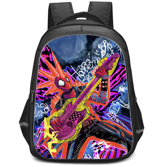 Get ready to swing into action with the Spider Man Across The Spider Verse Spider Punk Backpack StudentPack. Designed with Spider Punk Hobbie Brown, this versatile backpack is a must-have for every Spider Man fan.Our StudentPack is ultra durable and trendy, designed especially for students both young and old. Featuring one main compartment, a front compartment, and all of the space you could ever imagine. Durable and lightweight, the StudentPack is the perfect throw-on-and-go backpack for students.Features:- Roomy main compartment- Front compartment- 2 mesh pockets on both sides- Built to last, high quality waterproof oxford cloth- Adjustable padded shoulder straps- Front pocket with built in organizer- Padding on the back panel for superior comfort- Padded grab handle on top- High quality metal zips- 100% recycled undyed linerSpecifications:Fabric: 100% Polyester Oxford ClothCapacity: 15L (Small size) / 27L (Large size)Weight: 17.63 oz / 500gDimensions: Large size: 16.5" x 13" x 6.3" / 42 x 33 x 16 cmSmall size: 13" x 11" x 6.3" / 32 x 28 x 16 cm