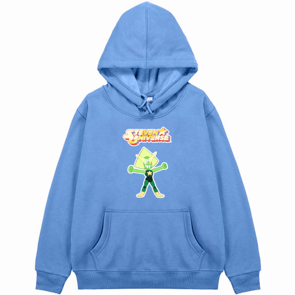 Shop the Steven Universe Peridot Hoodie, featuring a vibrant Peridot Standing Sticker design. This comfortable and stylish hooded sweatshirt is perfect for fans of the popular animated series.This hoodie is made from a blend of cotton and polyester. Relaxed fit with a jersey-lined, drawstring hood, a kangaroo pocket, long sleeves and wide ribbing at the cuffs and hem. Soft brushed inside.Features:- Rib-knit cuffs and waistband for stretchability- Double-lined hood and color-matched drawcord- Side-seamed- Pouch pocket- Pullover type
