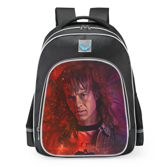 Stranger Things 4 Eddie Munson School Backpack. Curved Shoulder Straps with breathable mesh and back panel with multi layer sponge padding could protect your backbone and ease the bear load, help relieve the stress from your shoulder, breathable materials will keep you comfortable.Size Inches: 12x8x16.5 (Width x Depth x Height)Size cm: 30x20x42 (Width x Depth x Height) Volume: 27LFabric: 100% Polyester Oxford ClothWeight: 460gIf you're interested in customization or making your own backpack, please click the DIY icon at the top of our site.