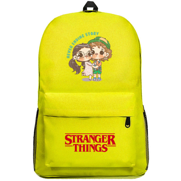 Shop the Stranger Things Backpack SuperPack featuring a cool design inspired by Suzie and Dustin?s iconic Neverending Story moment. Perfect for all fans of the hit Netflix series.Our SuperPack series backpacks are ultralight and perfect for everyday use. Featuring padded shoulder straps for extra comfort and support, and an organizer compartment to help keep all your little bits together. These backpacks are for those who want extra comfort, protection, and style. Features:- Roomy main compartment- Inner pocket within main compartment- Built to last, high quality polyester oxford cloth- Adjustable straight cut padded shoulder straps- Front pocket with built in organizer- Padding in center of back panel for superior comfort- Grab handle on top- Zipper pulls have cord tabs for easy grab access- 100% recycled undyed linerSpecifications:Fabric: 100% Polyester Fabric Oxford ClothCapacity Superpack: 1647 cu in / 27 LCapacity Plus: 1709 cu in / 28 LCapacity Pro: 1647 cu in / 27 LWeight Superpack: 14.1 oz / 400gWeight Plus: 17.53 oz / 500gWeight Pro: 14.1 oz / 400gDimensions Superpack: 17.7" x 12.2" x 7" / 45 x 31 x 18 cmDimensions Plus: 18.9" x 11.6" x 6.3" / 44 x 31 x 15 cmDimensions Pro: 17.3" x 11.8" x 6.3" / 44 x 30 x 16 cm
