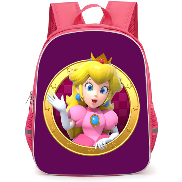 Get the Super Mario Peach Backpack StudentPack, featuring a vibrant violet background and the iconic Peach logo. Perfect for fans of the beloved video game, this backpack is a must-have accessory.Our StudentPack is ultra durable and trendy, designed especially for students both young and old. Featuring one main compartment, a front compartment, and all of the space you could ever imagine. Durable and lightweight, the StudentPack is the perfect throw-on-and-go backpack for students.Features:- Roomy main compartment- Front compartment- 2 mesh pockets on both sides- Built to last, high quality waterproof oxford cloth- Adjustable padded shoulder straps- Front pocket with built in organizer- Padding on the back panel for superior comfort- Padded grab handle on top- High quality metal zips- 100% recycled undyed linerSpecifications:Fabric: 100% Polyester Oxford ClothCapacity: 15L (Small size) / 27L (Large size)Weight: 17.63 oz / 500gDimensions: Large size: 16.5" x 13" x 6.3" / 42 x 33 x 16 cmSmall size: 13" x 11" x 6.3" / 32 x 28 x 16 cm