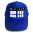 Perfect for any Doctor Who fan, this adjustable snapback trucker hat features the words "Police Box" and a police box design!