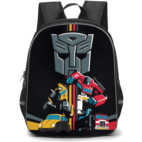 Shop the Transformers Backpack StudentPack featuring a minimalist design with iconic Optimus Prime and Bumblebee graphics. Perfect for students on the go.Our StudentPack is ultra durable and trendy, designed especially for students both young and old. Featuring one main compartment, a front compartment, and all of the space you could ever imagine. Durable and lightweight, the StudentPack is the perfect throw-on-and-go backpack for students.Features:- Roomy main compartment- Front compartment- 2 mesh pockets on both sides- Built to last, high quality waterproof oxford cloth- Adjustable padded shoulder straps- Front pocket with built in organizer- Padding on the back panel for superior comfort- Padded grab handle on top- High quality metal zips- 100% recycled undyed linerSpecifications:Fabric: 100% Polyester Oxford ClothCapacity: 15L (Small size) / 27L (Large size)Weight: 17.63 oz / 500gDimensions: Large size: 16.5" x 13" x 6.3" / 42 x 33 x 16 cmSmall size: 13" x 11" x 6.3" / 32 x 28 x 16 cm