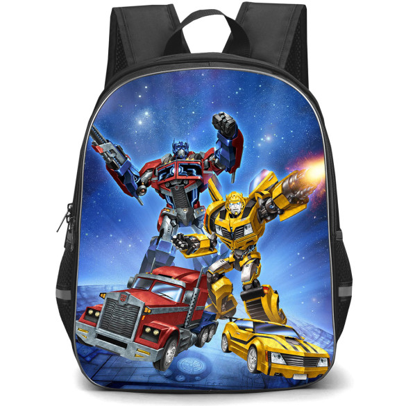 Get ready to take on any adventure with the Transformers Backpack StudentPack featuring Optimus Prime and Bumblebee. This transforming backpack combines style with functionality, perfect for any fan.Our StudentPack is ultra durable and trendy, designed especially for students both young and old. Featuring one main compartment, a front compartment, and all of the space you could ever imagine. Durable and lightweight, the StudentPack is the perfect throw-on-and-go backpack for students.Features:- Roomy main compartment- Front compartment- 2 mesh pockets on both sides- Built to last, high quality waterproof oxford cloth- Adjustable padded shoulder straps- Front pocket with built in organizer- Padding on the back panel for superior comfort- Padded grab handle on top- High quality metal zips- 100% recycled undyed linerSpecifications:Fabric: 100% Polyester Oxford ClothCapacity: 15L (Small size) / 27L (Large size)Weight: 17.63 oz / 500gDimensions: Large size: 16.5" x 13" x 6.3" / 42 x 33 x 16 cmSmall size: 13" x 11" x 6.3" / 32 x 28 x 16 cm