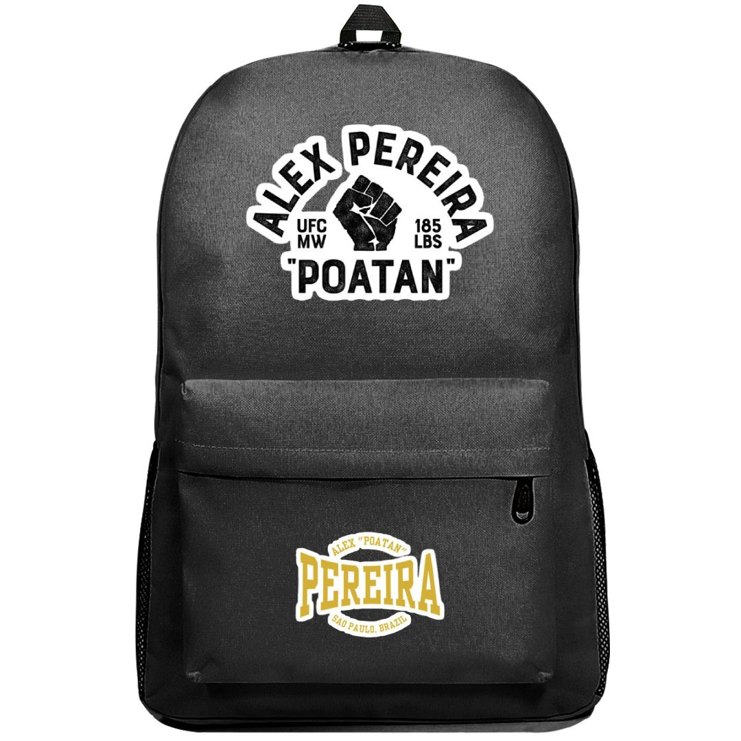 The UFC Alex Pereira Backpack SuperPack is the perfect companion for on-the-go enthusiasts, featuring ample storage space and a stylish design. Complete your collection with the Alex Pereira Logo Sticker Art, adding a touch of charm to your belongings.Our SuperPack series backpacks are ultralight and perfect for everyday use. Featuring padded shoulder straps for extra comfort and support, and an organizer compartment to help keep all your little bits together. These backpacks are for those who want extra comfort, protection, and style. Features:- Roomy main compartment- Inner pocket within main compartment- Built to last, high quality polyester oxford cloth- Adjustable straight cut padded shoulder straps- Front pocket with built in organizer- Padding in center of back panel for superior comfort- Grab handle on top- Zipper pulls have cord tabs for easy grab access- 100% recycled undyed linerSpecifications:Fabric: 100% Polyester Fabric Oxford ClothCapacity Superpack: 1647 cu in / 27 LCapacity Plus: 1709 cu in / 28 LCapacity Pro: 1647 cu in / 27 LWeight Superpack: 14.1 oz / 400gWeight Plus: 17.53 oz / 500gWeight Pro: 14.1 oz / 400gDimensions Superpack: 17.7" x 12.2" x 7" / 45 x 31 x 18 cmDimensions Plus: 18.9" x 11.6" x 6.3" / 44 x 31 x 15 cmDimensions Pro: 17.3" x 11.8" x 6.3" / 44 x 30 x 16 cm