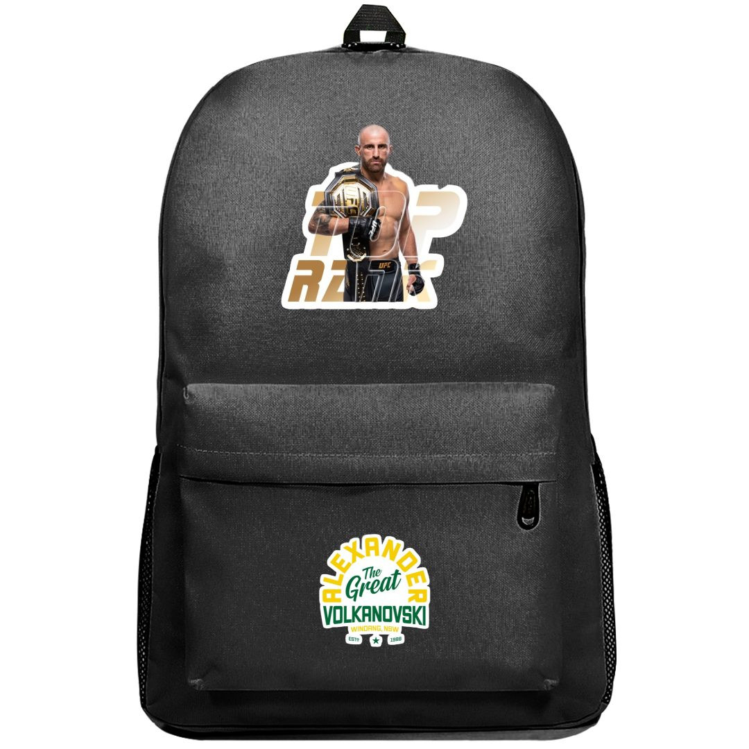 Shop the UFC Alexander Volkanovski SuperPack for the ultimate fan experience. Complete with the iconic Alexander Volkanovski and his championship title belt, this backpack is a must-have for MMA enthusiasts.Our SuperPack series backpacks are ultralight and perfect for everyday use. Featuring padded shoulder straps for extra comfort and support, and an organizer compartment to help keep all your little bits together. These backpacks are for those who want extra comfort, protection, and style. Features:- Roomy main compartment- Inner pocket within main compartment- Built to last, high quality polyester oxford cloth- Adjustable straight cut padded shoulder straps- Front pocket with built in organizer- Padding in center of back panel for superior comfort- Grab handle on top- Zipper pulls have cord tabs for easy grab access- 100% recycled undyed linerSpecifications:Fabric: 100% Polyester Fabric Oxford ClothCapacity Superpack: 1647 cu in / 27 LCapacity Plus: 1709 cu in / 28 LCapacity Pro: 1647 cu in / 27 LWeight Superpack: 14.1 oz / 400gWeight Plus: 17.53 oz / 500gWeight Pro: 14.1 oz / 400gDimensions Superpack: 17.7" x 12.2" x 7" / 45 x 31 x 18 cmDimensions Plus: 18.9" x 11.6" x 6.3" / 44 x 31 x 15 cmDimensions Pro: 17.3" x 11.8" x 6.3" / 44 x 30 x 16 cm