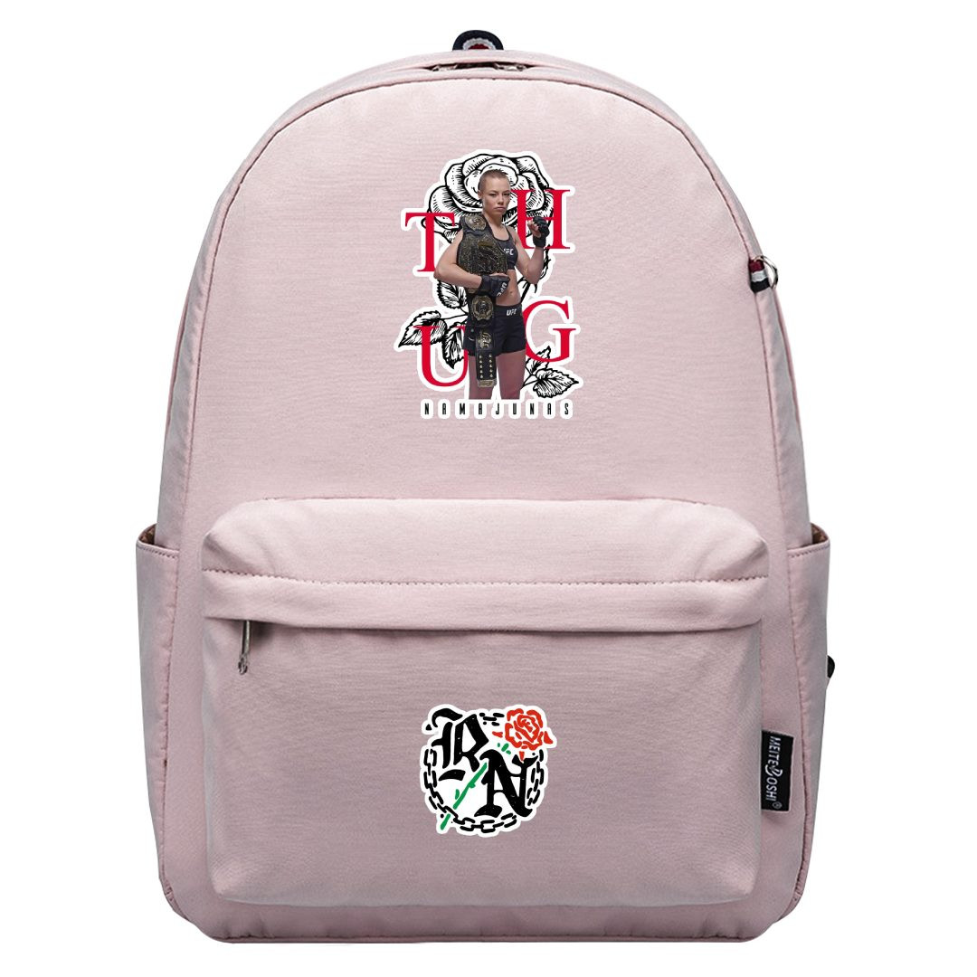 Gear up and show your love for UFC superstar Rose Namajunas with this exclusive SuperPack. Featuring a stunning sticker art of Rose standing proudly with her title belt, this backpack is perfect for carrying your essentials in style.Our SuperPack series backpacks are ultralight and perfect for everyday use. Featuring padded shoulder straps for extra comfort and support, and an organizer compartment to help keep all your little bits together. These backpacks are for those who want extra comfort, protection, and style. Features:- Roomy main compartment- Inner pocket within main compartment- Built to last, high quality polyester oxford cloth- Adjustable straight cut padded shoulder straps- Front pocket with built in organizer- Padding in center of back panel for superior comfort- Grab handle on top- Zipper pulls have cord tabs for easy grab access- 100% recycled undyed linerSpecifications:Fabric: 100% Polyester Fabric Oxford ClothCapacity Superpack: 1647 cu in / 27 LCapacity Plus: 1709 cu in / 28 LCapacity Pro: 1647 cu in / 27 LWeight Superpack: 14.1 oz / 400gWeight Plus: 17.53 oz / 500gWeight Pro: 14.1 oz / 400gDimensions Superpack: 17.7" x 12.2" x 7" / 45 x 31 x 18 cmDimensions Plus: 18.9" x 11.6" x 6.3" / 44 x 31 x 15 cmDimensions Pro: 17.3" x 11.8" x 6.3" / 44 x 30 x 16 cm