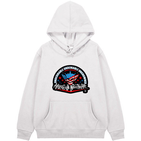 Shop the WWE Cody Rhodes Hoodie, featuring a trendy hooded sweatshirt design infused with Cody Rhodes' American Nightmare sticker art. Stay fashionable with this exclusive sweater jacket.This hoodie is made from a blend of cotton and polyester. Relaxed fit with a jersey-lined, drawstring hood, a kangaroo pocket, long sleeves and wide ribbing at the cuffs and hem. Soft brushed inside.Features:- Rib-knit cuffs and waistband for stretchability- Double-lined hood and color-matched drawcord- Side-seamed- Pouch pocket- Pullover type