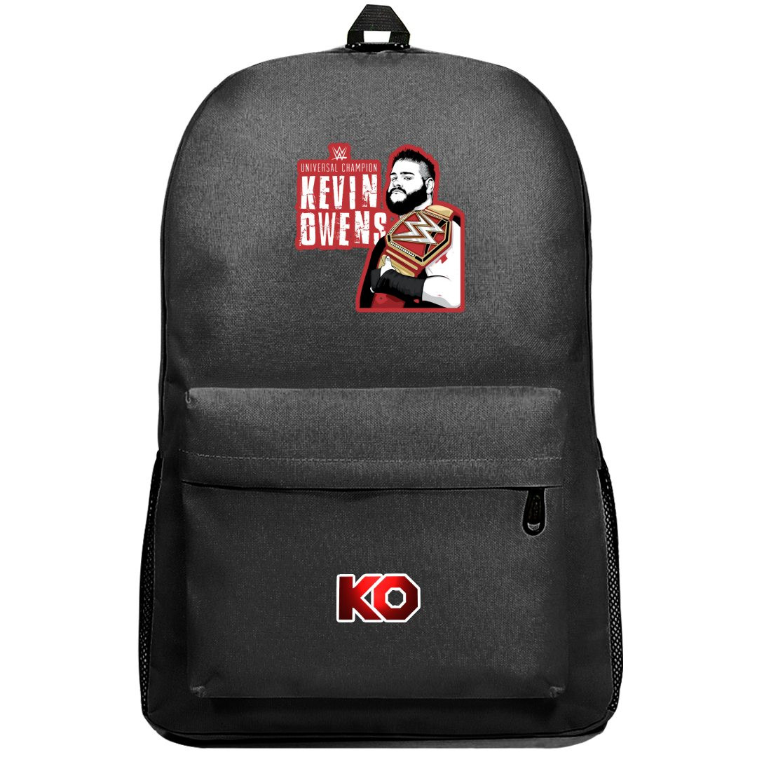 Shop the WWE Kevin Owens Backpack SuperPack and level up your style with the Kevin Owens Universal Champion Sticker Art. Elevate your fandom with this must-have accessory.Our SuperPack series backpacks are ultralight and perfect for everyday use. Featuring padded shoulder straps for extra comfort and support, and an organizer compartment to help keep all your little bits together. These backpacks are for those who want extra comfort, protection, and style. Features:- Roomy main compartment- Inner pocket within main compartment- Built to last, high quality polyester oxford cloth- Adjustable straight cut padded shoulder straps- Front pocket with built in organizer- Padding in center of back panel for superior comfort- Grab handle on top- Zipper pulls have cord tabs for easy grab access- 100% recycled undyed linerSpecifications:Fabric: 100% Polyester Fabric Oxford ClothCapacity Superpack: 1647 cu in / 27 LCapacity Plus: 1709 cu in / 28 LCapacity Pro: 1647 cu in / 27 LWeight Superpack: 14.1 oz / 400gWeight Plus: 17.53 oz / 500gWeight Pro: 14.1 oz / 400gDimensions Superpack: 17.7" x 12.2" x 7" / 45 x 31 x 18 cmDimensions Plus: 18.9" x 11.6" x 6.3" / 44 x 31 x 15 cmDimensions Pro: 17.3" x 11.8" x 6.3" / 44 x 30 x 16 cm
