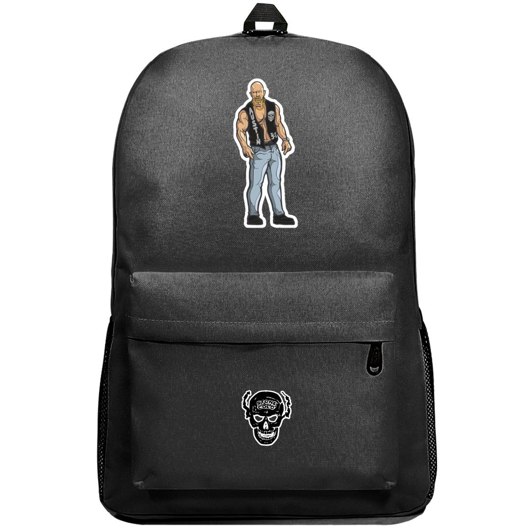Shop the WWE Steve Austin Backpack SuperPack featuring a striking Steve Austin Standing Vector Illustration Sticker Art. Perfect for all Austin fans, get ready to take on the day with this must-have accessory.Our SuperPack series backpacks are ultralight and perfect for everyday use. Featuring padded shoulder straps for extra comfort and support, and an organizer compartment to help keep all your little bits together. These backpacks are for those who want extra comfort, protection, and style. Features:- Roomy main compartment- Inner pocket within main compartment- Built to last, high quality polyester oxford cloth- Adjustable straight cut padded shoulder straps- Front pocket with built in organizer- Padding in center of back panel for superior comfort- Grab handle on top- Zipper pulls have cord tabs for easy grab access- 100% recycled undyed linerSpecifications:Fabric: 100% Polyester Fabric Oxford ClothCapacity Superpack: 1647 cu in / 27 LCapacity Plus: 1709 cu in / 28 LCapacity Pro: 1647 cu in / 27 LWeight Superpack: 14.1 oz / 400gWeight Plus: 17.53 oz / 500gWeight Pro: 14.1 oz / 400gDimensions Superpack: 17.7" x 12.2" x 7" / 45 x 31 x 18 cmDimensions Plus: 18.9" x 11.6" x 6.3" / 44 x 31 x 15 cmDimensions Pro: 17.3" x 11.8" x 6.3" / 44 x 30 x 16 cm