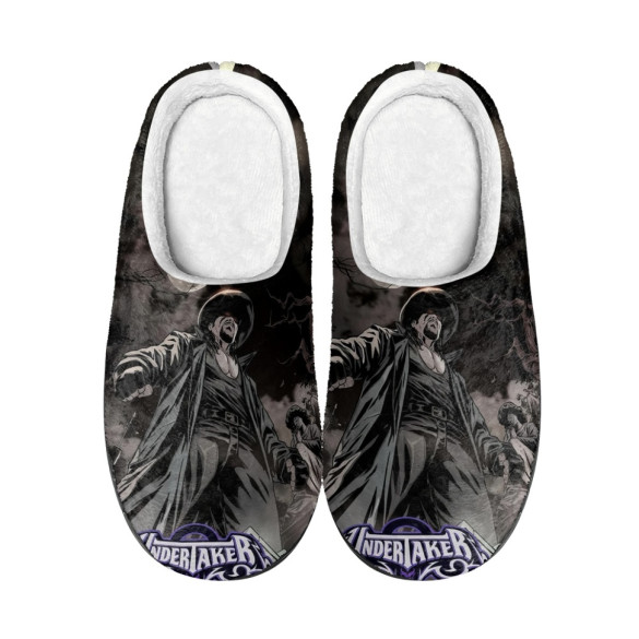 Shop the WWE The Undertaker Slippers featuring the iconic Deadman Poster design. Perfect for fans of The Undertaker, these slippers provide comfort with a touch of darkness.Keep cozy and warm during the colder months with these soft slippers. Perfect for keeping your toes toasty whilst lounging around. Shaped for a sleek and modern silhouette with minimalist styling. Warm, breathable and naturally odor resistant.Features:- Made from 100% polyester- Slip-on style- Grip sole