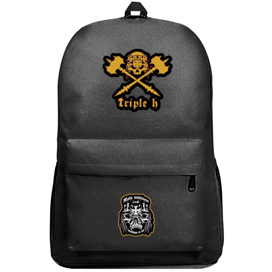 Discover the ultimate WWE Triple H Backpack SuperPack featuring a stunning Cross Hammer And Skull Sticker Art, perfect for any die-hard wrestling fan. Upgrade your gear and show off your love for Triple H in style.Our SuperPack series backpacks are ultralight and perfect for everyday use. Featuring padded shoulder straps for extra comfort and support, and an organizer compartment to help keep all your little bits together. These backpacks are for those who want extra comfort, protection, and style. Features:- Roomy main compartment- Inner pocket within main compartment- Built to last, high quality polyester oxford cloth- Adjustable straight cut padded shoulder straps- Front pocket with built in organizer- Padding in center of back panel for superior comfort- Grab handle on top- Zipper pulls have cord tabs for easy grab access- 100% recycled undyed linerSpecifications:Fabric: 100% Polyester Fabric Oxford ClothCapacity Superpack: 1647 cu in / 27 LCapacity Plus: 1709 cu in / 28 LCapacity Pro: 1647 cu in / 27 LWeight Superpack: 14.1 oz / 400gWeight Plus: 17.53 oz / 500gWeight Pro: 14.1 oz / 400gDimensions Superpack: 17.7" x 12.2" x 7" / 45 x 31 x 18 cmDimensions Plus: 18.9" x 11.6" x 6.3" / 44 x 31 x 15 cmDimensions Pro: 17.3" x 11.8" x 6.3" / 44 x 30 x 16 cm